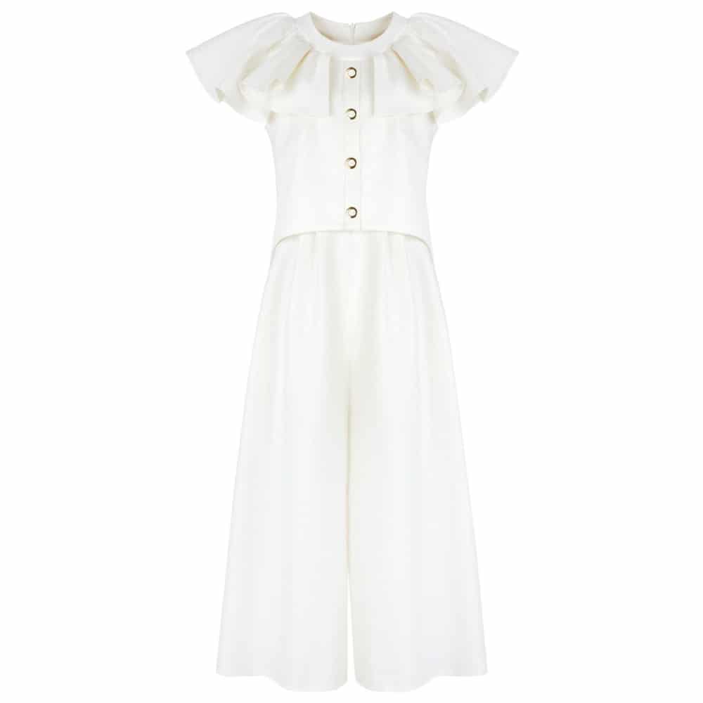 The classic Carla Zampatti jumpsuit has been a hallmark of the fashion house since 1965. The Striscia Jumpsuit combines the knowledge of decades of careful refinement to create a figure sculpting silhouette. The v-neckline defines the décolletage while the tailored pants are refined with a pressed centre pleat.